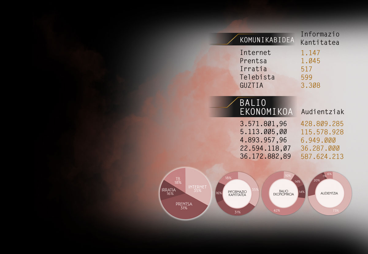 Informazio/emankizunen kopurua 3.308koa izan da, eta Internet da hedabide liderra 1.147rekin.